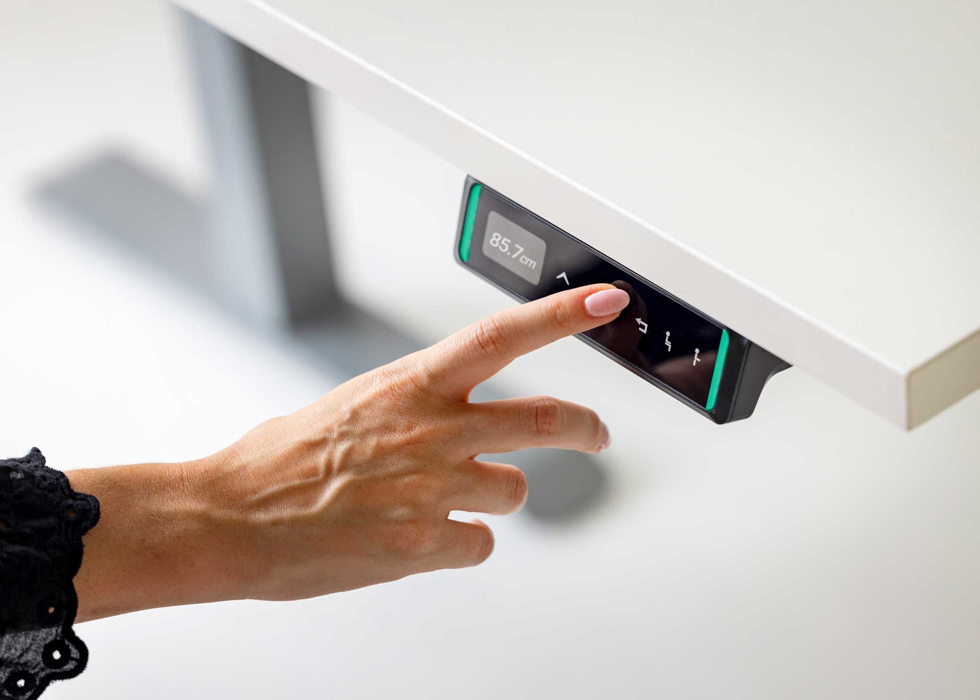 Irányítás egy érintéssel: A prémium WP-H76 kézivezérlővel milliméteres pontossággal állíthatja be az ideális magasságot. Nincs több görnyedés, csak tökéletes testtartás.